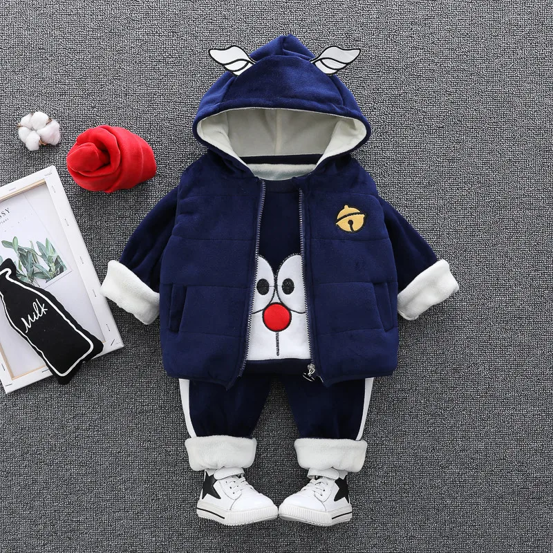 HOT SALE Baby Boys Girls Cartoon Clothing Sets Winter Warm Vest Coat + Sweatshirt + Pants 3Pcs Infant Kids C