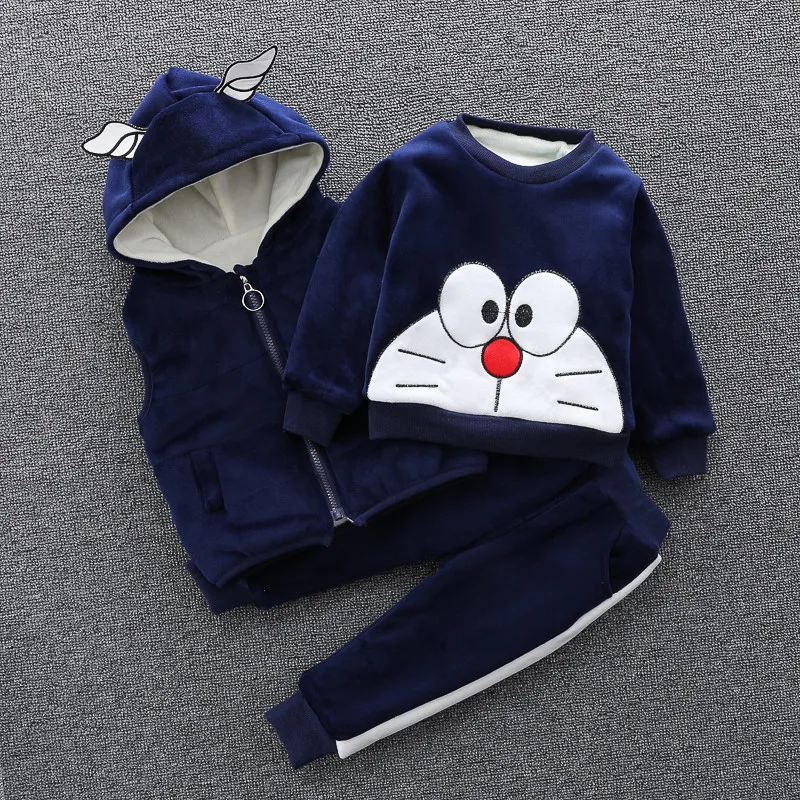 Baby Boys Girls Cartoon Clothing Sets Winter Warm Vest Coat + Sweatshirt + Pants 3Pcs Infant Kids C