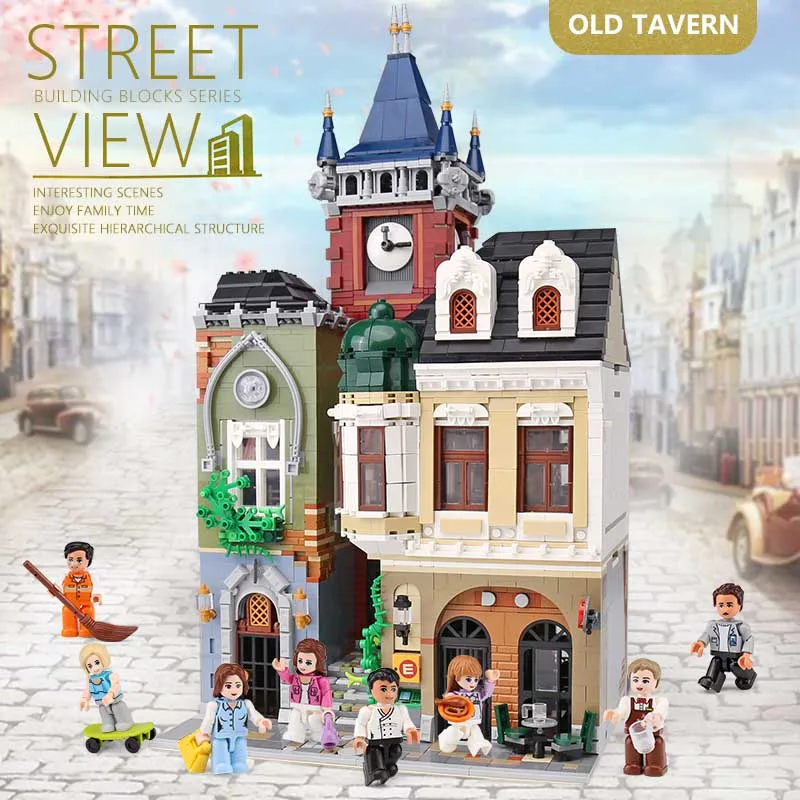 HOT Sale MOC 4030PCS City Streetview series The brickstive old town pub Model Building Kits Blocks Bricks Ki